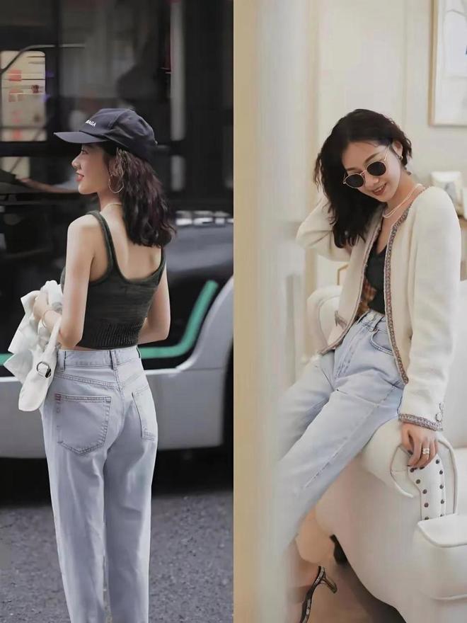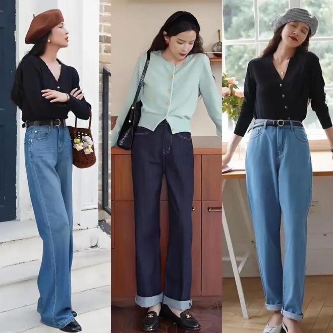 不过我们在穿衣打扮的时候,要想办法去提升腰线,比如下面这三套穿搭造型用的是上短下长的搭配技巧,短款针织开衫搭配牛仔裤,就能穿出三七分的身材比例。