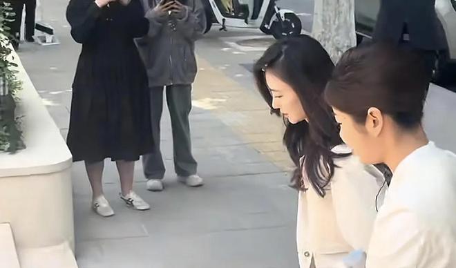 尤其她刚下车时没走几步,便不停地回头,只留了个背影给网友,这背影像是谁家的大姐,有一种上年纪的感觉。