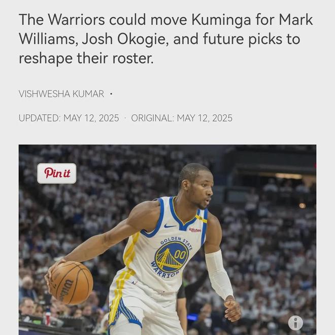对于金州勇士队来说,交易乔纳森库明加的价值,大于继续留下他。2024-25赛季乔纳森库明加场均15.3分,4.6个篮板和2.2次助攻,投篮命中率45.4%,三分球投篮命中率30.5%。对于想要夺冠的金州勇士队来说,乔纳森库明加可有可无,因为他们已经有吉米巴特勒这种前锋。