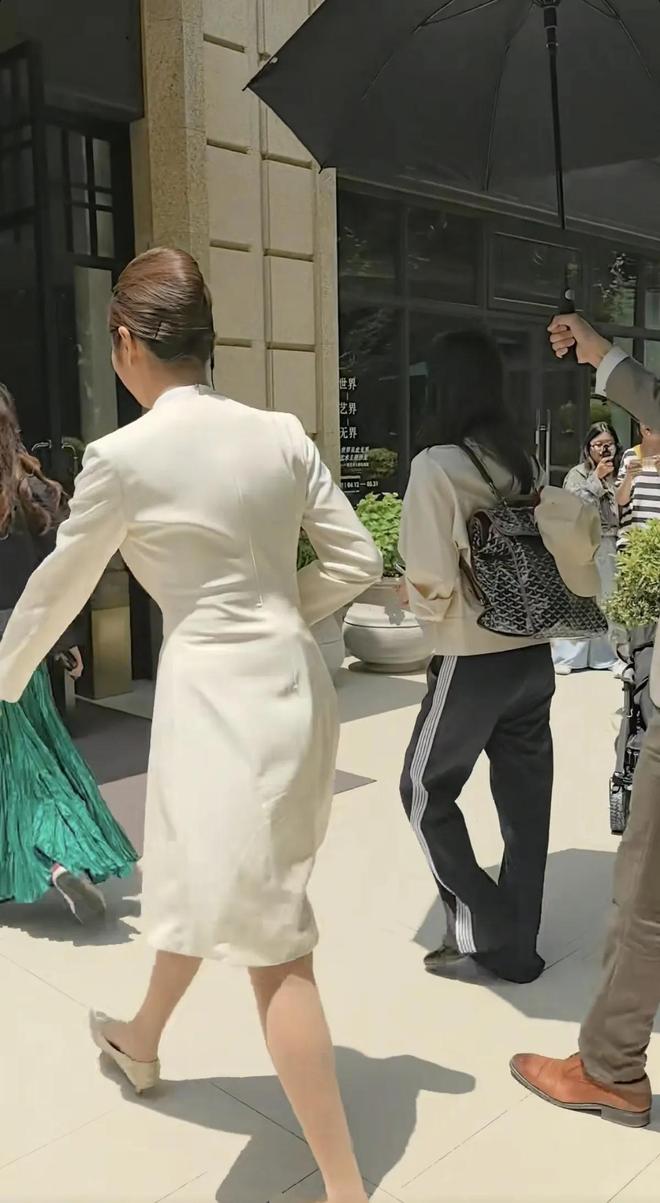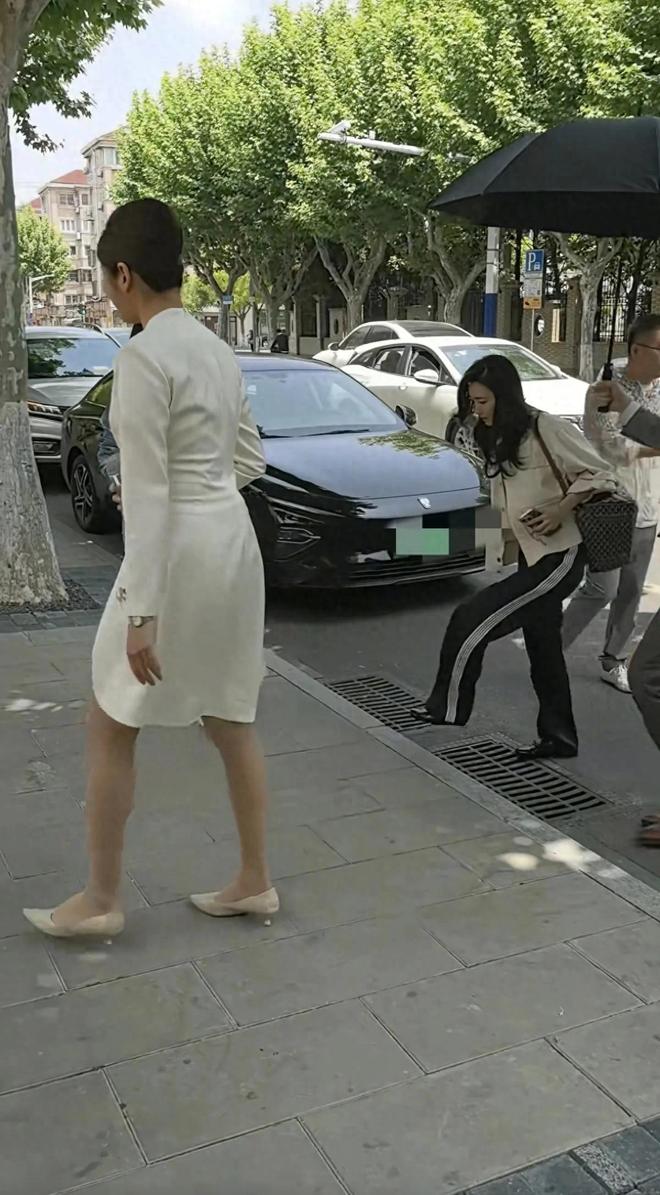 尤其她刚下车时没走几步,便不停地回头,只留了个背影给网友,这背影像是谁家的大姐,有一种上年纪的感觉。